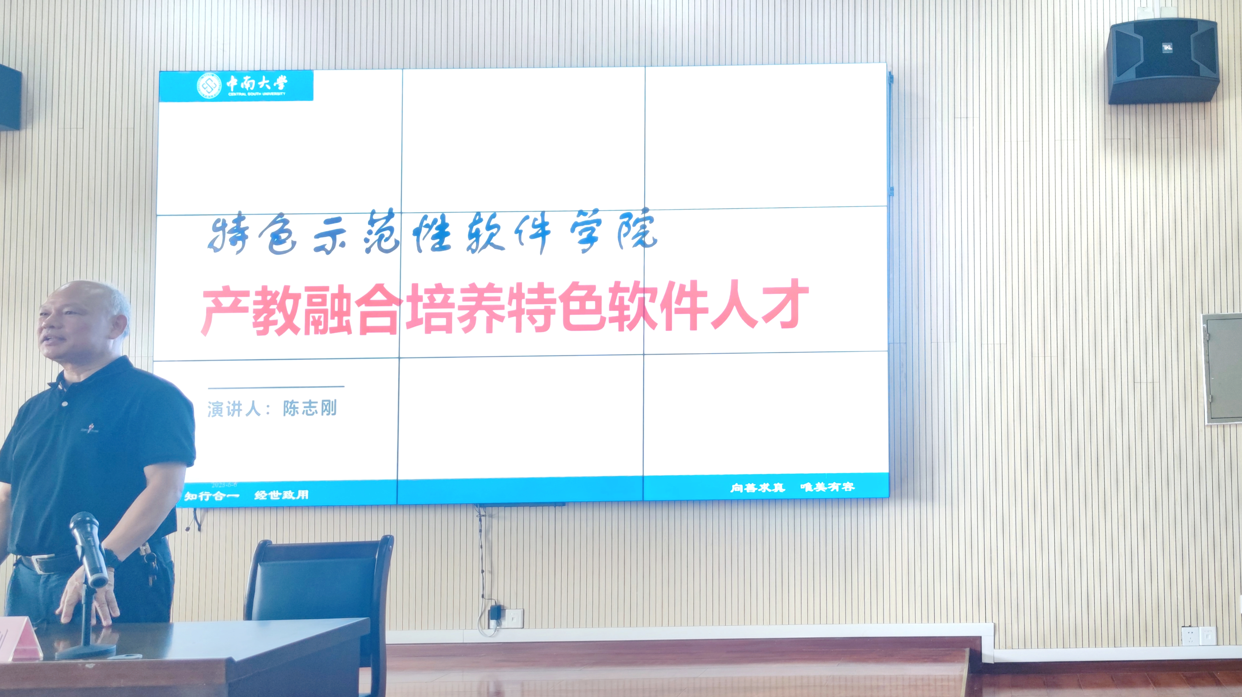 陈志刚教授的讲座题目为“产教融合培养特色软件人才”。陈志刚教授从“信创产业产教融合背景”“特色化示范性软件公司”“产教融合特色化软件人才培养”等方面为公司师生做了介绍。陈志刚教授指出,产教融合特色化软件人才培养的根本任务是以促进员工全面发展为中心,以过程性考核与结果性考核有机结合为培养评价,以产业需求为导向,发挥办学特长和优势作为培养模式,以国际交流合作、行业企业参与和管理、共建共享为培养机制,培养德智体美劳全面发展的社会主义建设者和接班人。陈志刚教授最后阐述了总体设想,专业建设目标,产教融合特色化软件人才培养体系、目标和质量保障体系,为本次讲座画上圆满的句号。