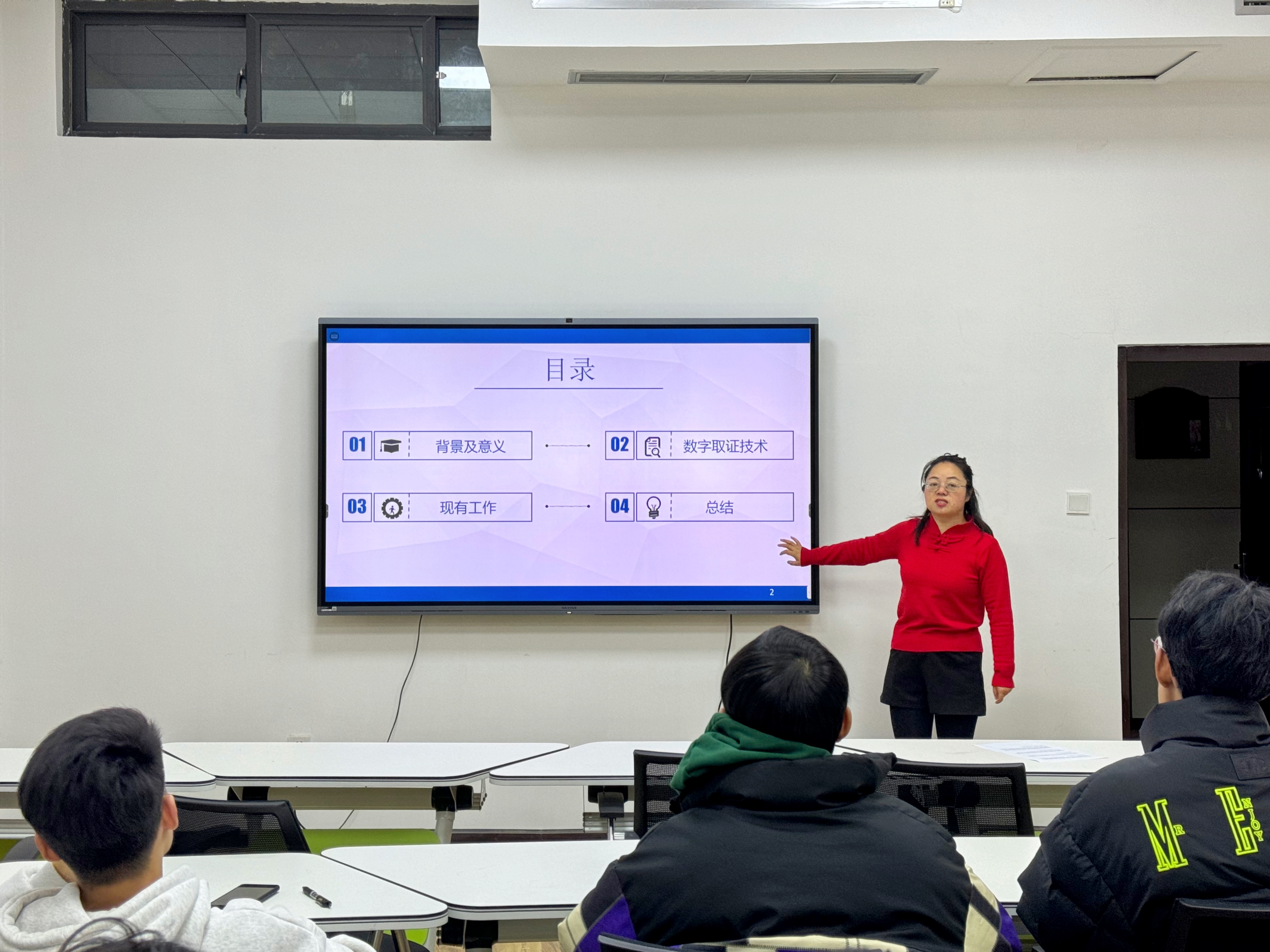 钱清博士的报告题目为“多媒体数据中的安全取证技术”。随着互联网技术的飞速发展,便捷的多媒体编辑软件的出现为人们的生活带来了便利,但同时也存在极大的安全隐患。本报告中,钱清博士首先对数字媒体安全问题为与会师生进行了概述,进而探究针对数字媒体内容安全隐患的数字取证技术,分析其研究意义及问题解决方案。其次,钱清博士深入阐述了现有数字媒体内容的主动取证技术和被动取证技术,分析不同取证技术的优劣势。最后,进一步介绍和阐述了目前项目团队的研究工作。