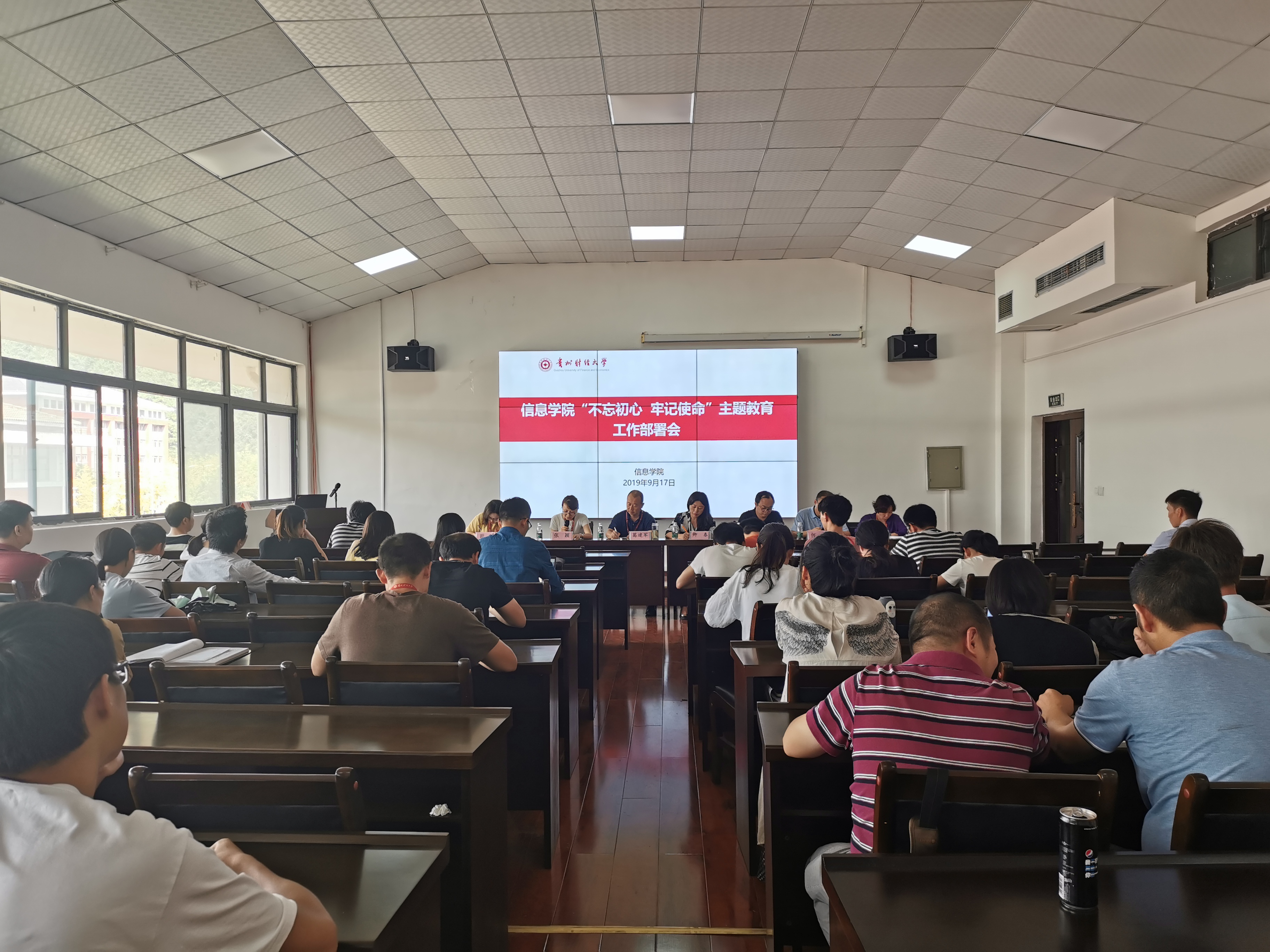 最后,葛建军作总结讲话。他讲到,今年是新中国成立70周年,在这个时刻开展“不忘初心 牢记使命”主题教育,意义重大,影响深远。大家要提高政治站位,切实把思想和行动统一到习近平总书记关于“不忘初心、牢记使命”主题教育的重要讲话精神上来,坚持用习近平新时代中国特色社会主义思想武装头脑、指导实践、推动工作。对公司进一步开展好“不忘初心、牢记使命”主题教育,他强调,一是要尽快行动,积极落实,他要求,公司要认真领会公司主题教育动员部署会和褚光荣书记的动员讲话精神,安排、部署好本公司的主题教育;二是扎实、深入开展和完成好中央、省委和公司要求安排部署的主题教育所有规定动作。不打折扣、不消减份量,不跑题、不走样,原汁原味地开展好主题教育。公司要积极思考,发挥主观能动性,有创新、有特色地开展好主题教育;三是积极要把开展主题教育和公司中心工作紧密结合起来。积极发挥公司专业优势,在科研、学科竞赛、脱贫攻坚和服务地方经济上做出应有的贡献。