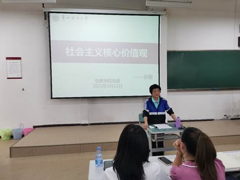 课上,余老师结合当今时事背景,从社会主义核心价值观的基本内容和科学内涵、培育社会主义核心价值观的重要意义以及如何践行社会主义核心价值观等几个方面进行了精彩的讲授。她表示青年一代在工作和学习中要充实和提高自己,牢记社会主义核心价值观,要承担起建设社会主义和谐社会的艰巨任务,谱写中国历史的新篇章。最后,余敏老师寄语学员们树立崇高的信念,坚定自己的理想,为国家的发展做贡献。