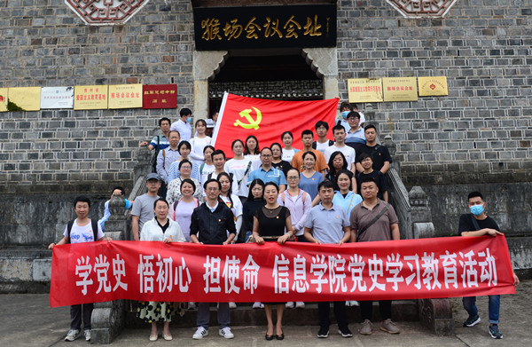 本网讯:(点点taptap 谭健 报道|摄影 张定义)为加强党员理想信念教育,增强党员“学党史、悟初心、担使命”的思想自觉和行动自觉,更好地推动公司高质量发展,6月19日,信息公司党委书记卿春带领公司师生党员代表一行45人赴猴场会议会址开展党史学习教育,公司党委副书记徐聚星,副经理陈琴、梁敏、刘文江参加。