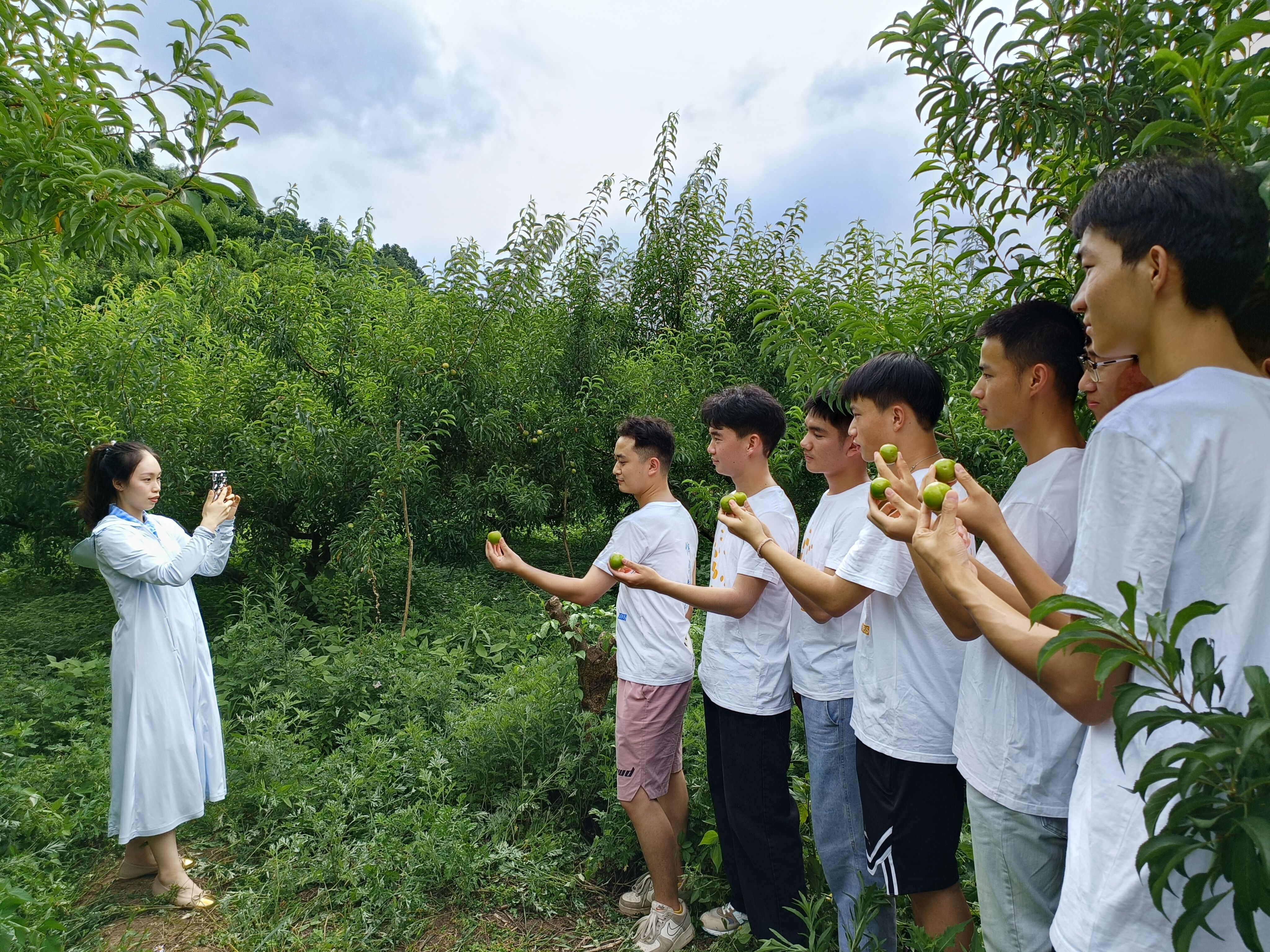 “荔枝助农小分队”在博士农场负责人的带领下来到果园和民宿进行文创采风和素材收集。在六月的果园里,王凌云老师带领实践团队与农场管理人员就种植规模及管理模式、产品销售渠道等方面进行了访谈。在初步了解蜂糖李品质、现阶段种植技术之后,团队成员提出建设观光休闲旅游农业带,通过举办农场田园研学露营和果园采摘活动,以点带面,带动水果,民宿等产业发展。同时针对农场水果销售不畅的问题,团队成员一起策划了电商直播的方案。