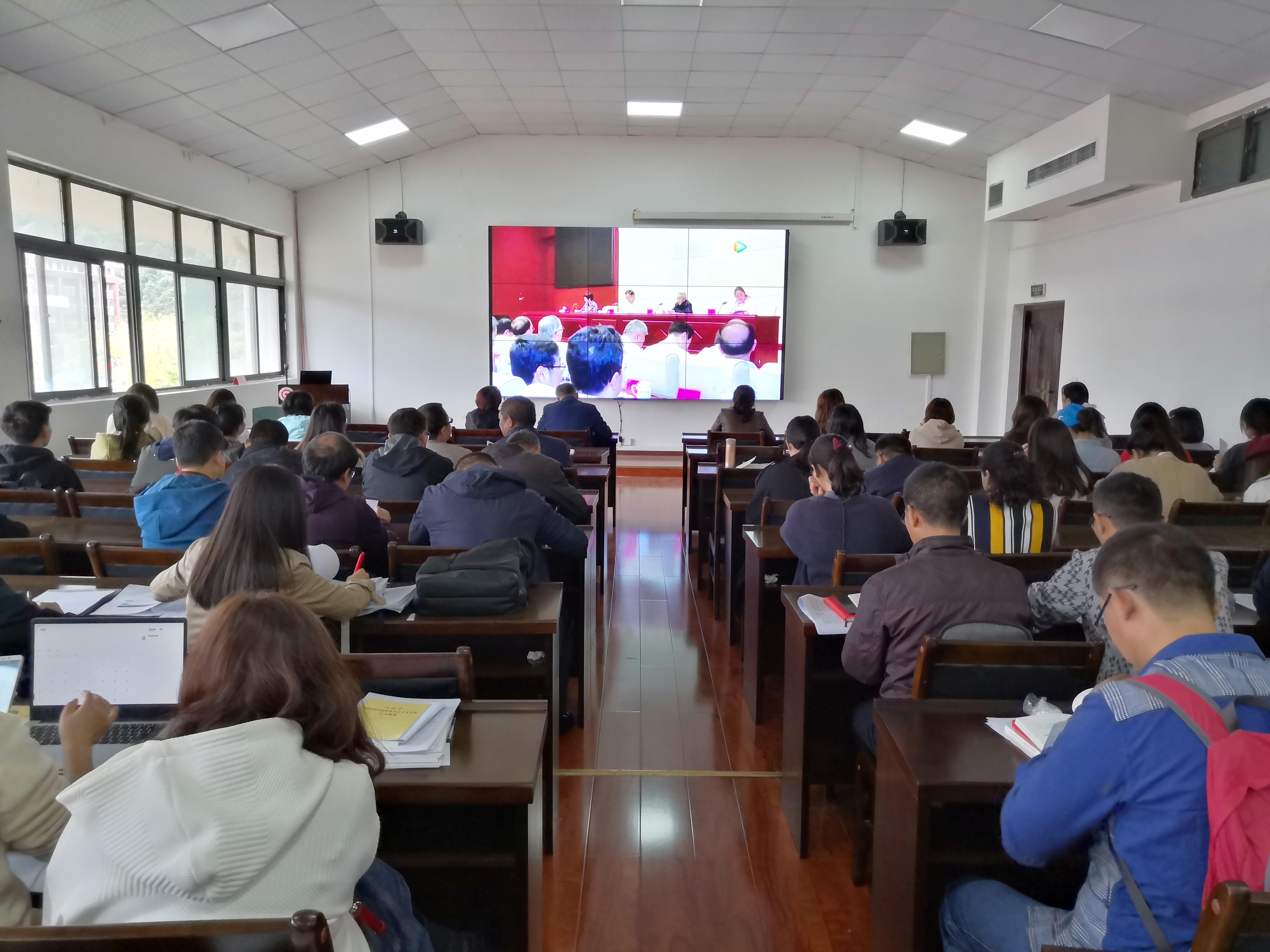 会上组织公司师生党员和教师观看学习黄大发、余留芬、邓迎香等先进典型在省委理论学习中心组专题报告会上的报告视频。