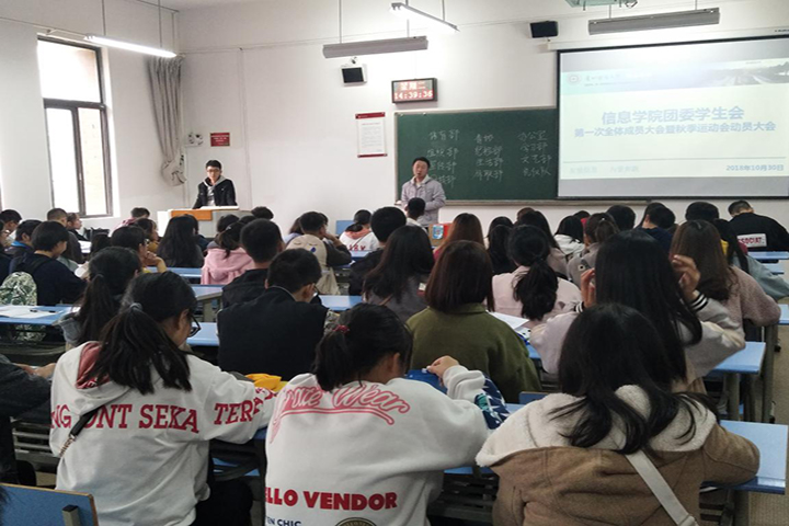 会议初期,黄意主席就秋季运动会发表讲话,对运动会作出相关部署,并提出运动会期间应提前到场、工作时应坚守工作岗位的相关要求;会议中,王游滨书记强调各部门之间应团结协助、不忘初心,希望每位成员在员工会能学到更多课本之外的知识,不断地丰富自己;此后,各部长进行自我介绍,并就其部门职能对自己部门作简单的介绍;会议最后,主席团各副主席兼团委副书记发表讲话:张金燕副书记提出运动会期间的相关注意事项,黄超超副主席对员工会及其职能进行充分解释,李方方副主席希望每位成员敢于对推脱说“不”,雷南副主席强调每位员工会成员应清楚自己在员工会的责任及其职能。在全体员工会成员留影后,本次会议圆满结束。