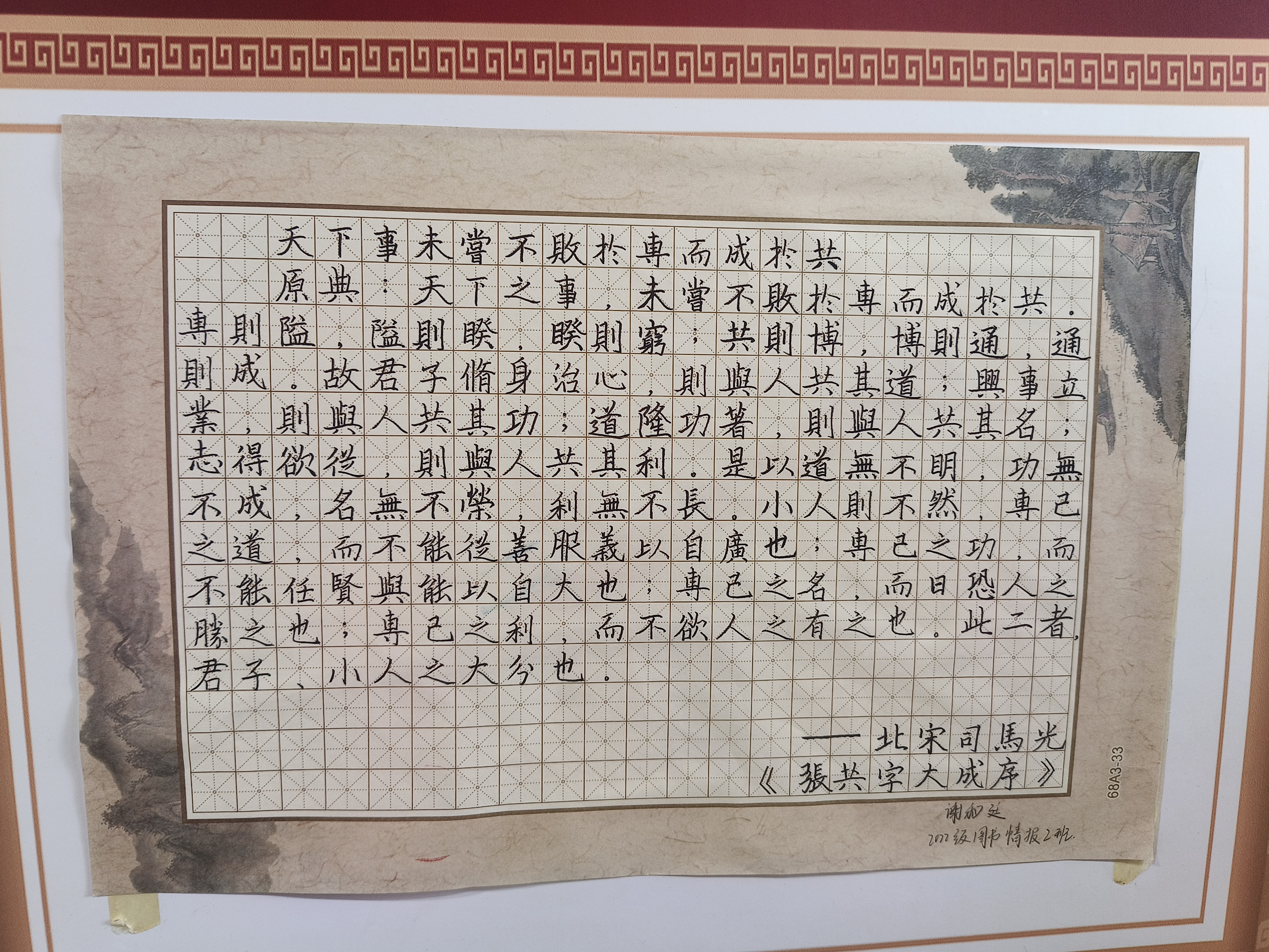 本网讯:(李杰 图文报道)为进一步引导广大同学感悟中华优秀传统文化,领略习近平总书记的独特语言风格和人格魅力,点点taptap组织开展了《习近平用典》书法研习比赛,并于2024年11月17日-24日在樱花苑1栋一站式员工社区进行了优秀作品展示,吸引了很多爱好书法的师生驻足观看。