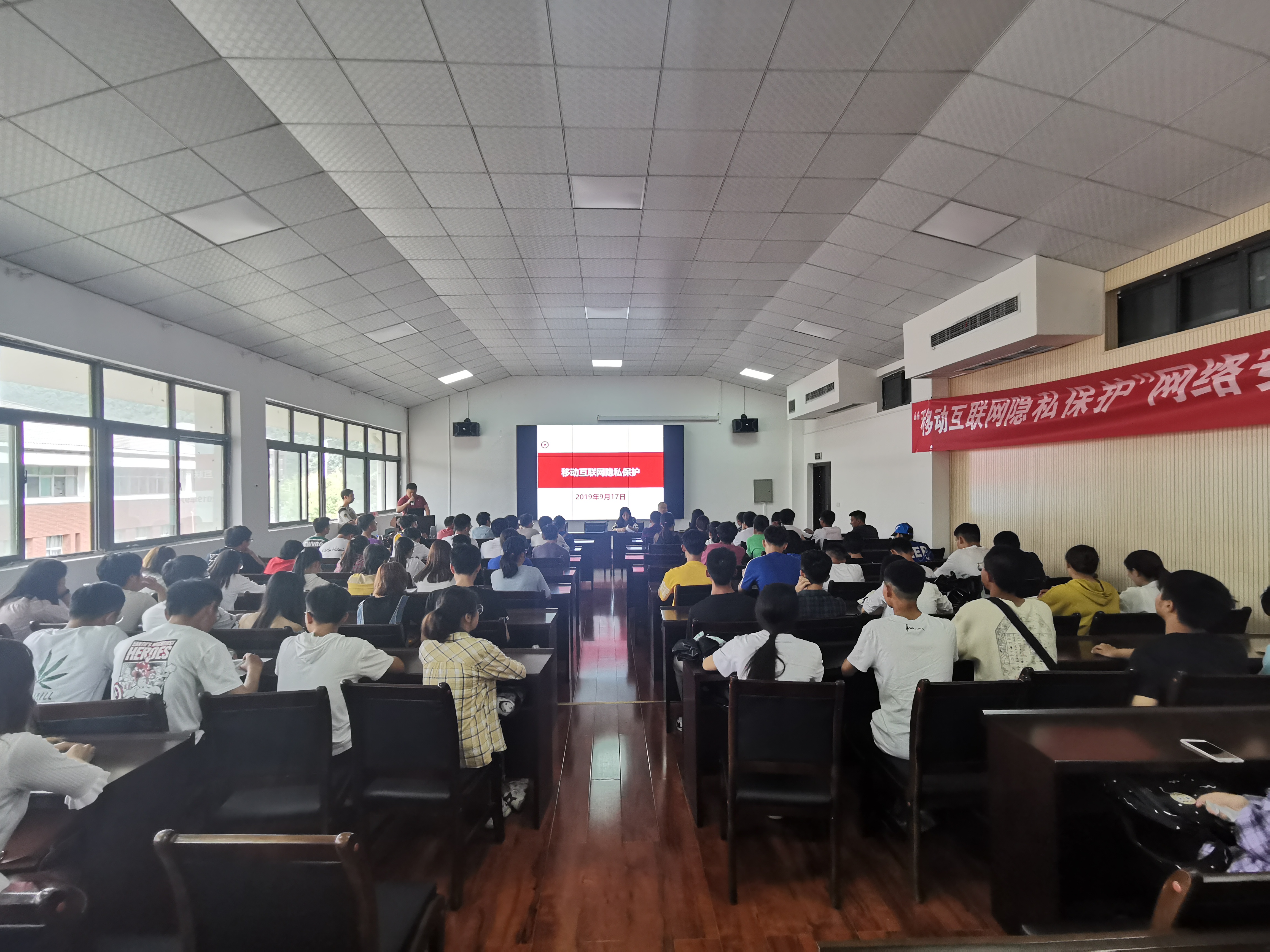 本网讯:(赵里红 图文报道)为进一步做好网络安全宣传教育,9月17日下午,点点taptap在志学楼506报告厅举行“移动互联网隐私保护”网络安全主题讲座,公司刘海博士主讲,公司党委书记卿春、副书记何瑞及全院师生代表共计100余人参加。