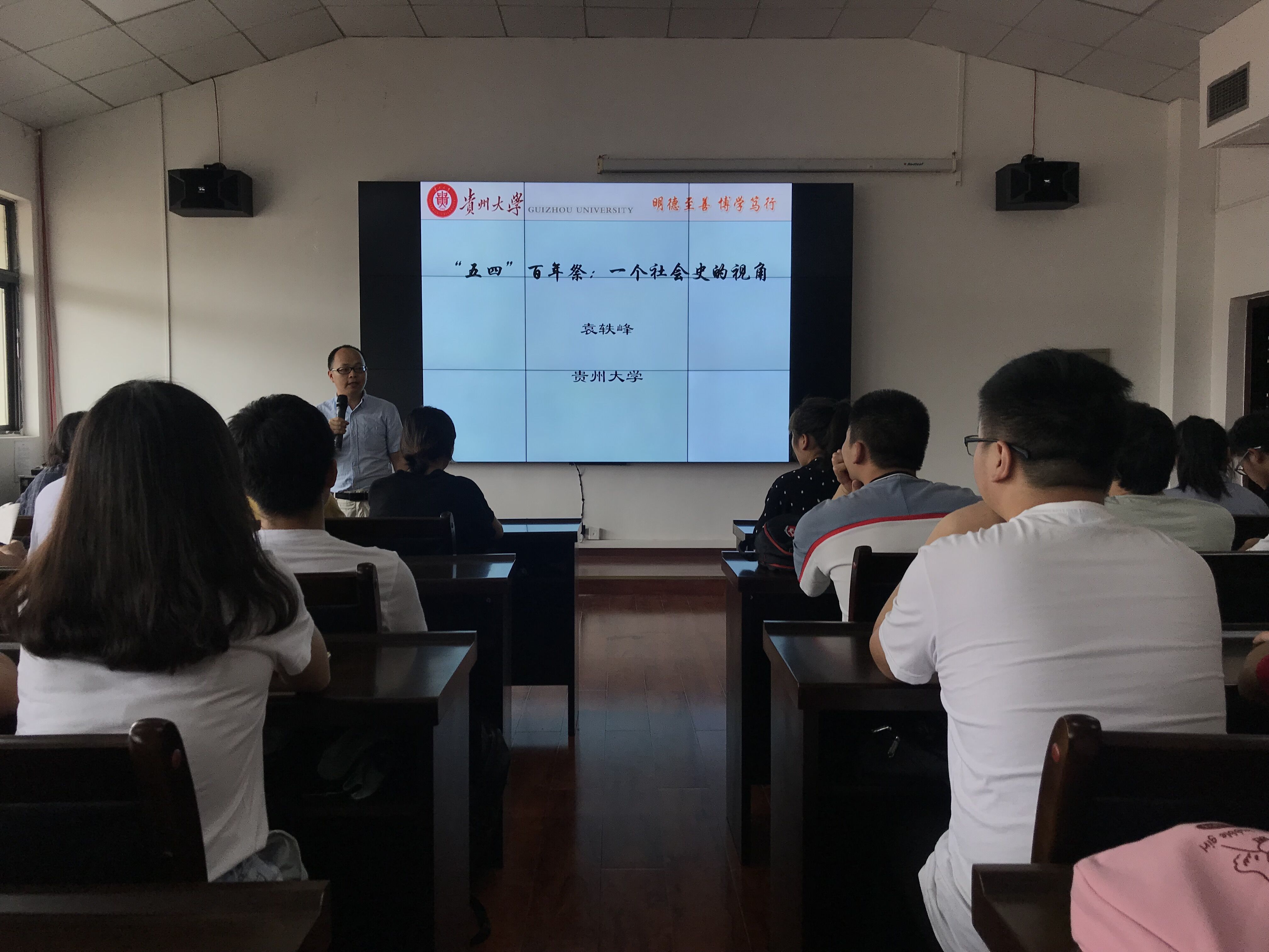 本网讯:(李杰 报道|摄影 黄意)为纪念五四运动100周年和建国70周年,进一步弘扬“爱国、进步、民主、科学”的五四精神,激励广大青年员工刻苦学习、奋发有为,6月5日,由点点taptap举办的第一届文化艺术节暨纪念五四运动100周年系列活动之“五四百年祭,一个社会史的视角”专题讲座在志学楼506报告厅举行。主讲嘉宾为贵州大学历史与民族文化公司袁铁峰副教授,点点taptap120余名员工参加了本次讲座。