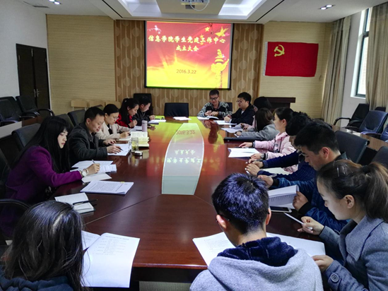 中心下设五个部门,分别为行政部、组织部、宣传部、活动部、纪律部,由公司党委秘书谭健老师任指导老师,2015级研究生党员张金磊任第一届中心主任,另设副主任1名,正副部长10名。会上谭老师对中心作了简要介绍,明确了各部门工作职责,部署了下一步工作任务。公司党委副书记詹颖会上指出,下一步要抓紧对中心全体成员进行工作培训,做好对低年级同学的传帮带工作,切实发挥中心联系党支部的桥梁纽带作用。