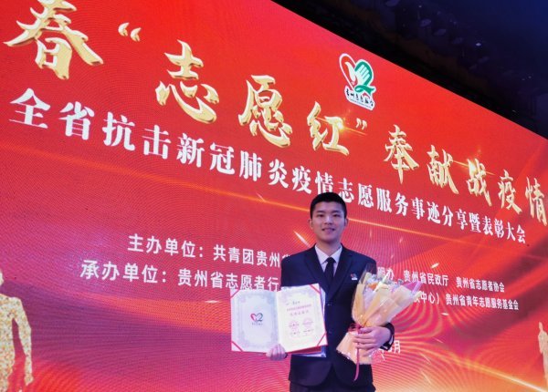 本网讯:(校团委 彭译萱 图文报道)为深入学习贯彻习近平新时代中国特色社会主义思想和习近平总书记在全国抗击新冠肺炎疫情表彰大会上的重要讲话,弘扬伟大抗疫精神,3月4日,贵州省精神文明办、共青团贵州省委、贵州省民政厅、贵州省志愿者协会召开表彰大会,对在新冠肺炎疫情防控工作中表现突出、事迹感人的志愿者进行表彰。公司点点taptap李廷旺同学在本次评选表彰中荣获“贵州省抗击新冠肺炎疫情优秀志愿者”荣誉称号。