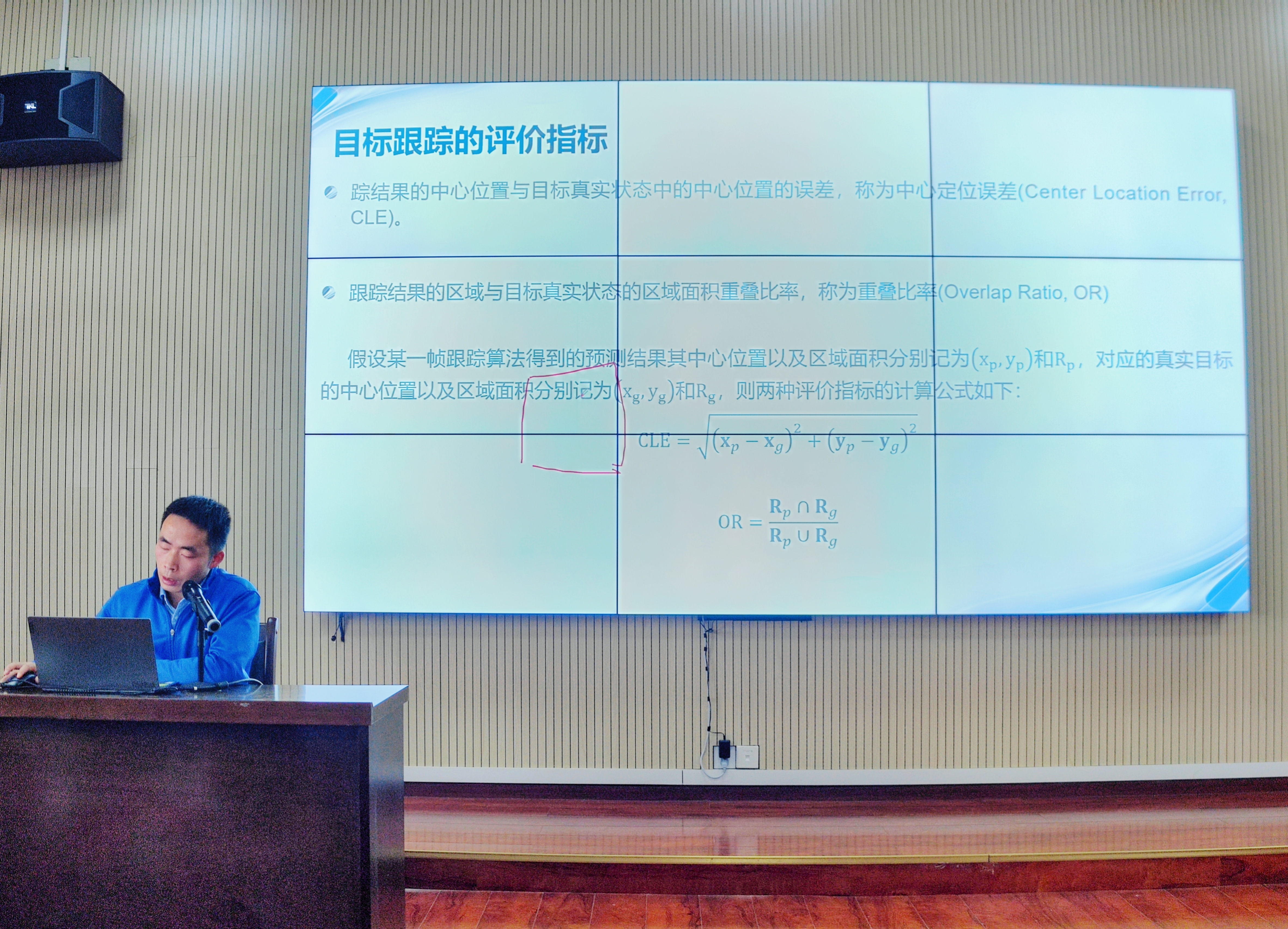 冯平博士开展了名为“基于时空信息融合的目标跟踪”的讲座。视频目标跟踪在初始帧给定目标位置和大小,需要在后续帧中预测目标的位置和尺度信息,在跟踪过程中可能受到其它物体的干扰、光照、姿态和运动等因素的影响。本次报告中,冯平博士从目标跟踪的基本方法,以及如何有效地融合时间和空间的信息实现更准确的目标跟踪等,为在场师生进行了介绍。